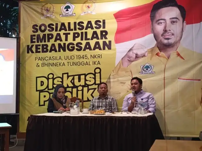 Anggota DPR RI Dapil Malang Raya, Ahmad Irawan menggelar diskusi publik bersama masyarakat dan awak media di Kota Malang, Jum’at (21/2/2025). Kegiatan tersebut dibalut dalam tajuk Sosialisasi Empat Pilar Kebangsaan Pancasila, UUD 1945, NKRI dan Bhinneka Tunggal Ika.